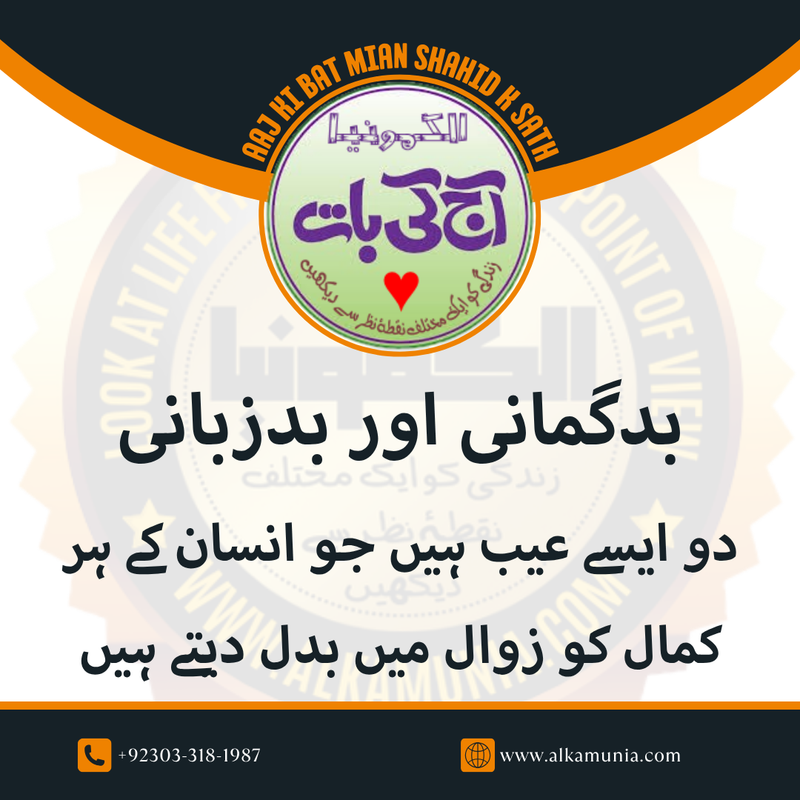 "بدگمانی اور بدزبانی، دو ایسے عیب ہیں جو انسان کے ہر کمال کو زوال میں بدل دیتے ہیں"