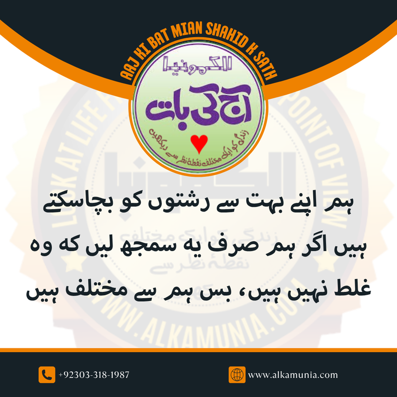 "ہم اپنے بہت سے رشتوں کو بچا سکتے ہیں اگر ہم صرف یہ سمجھ لیں کہ وہ غلط نہیں ہیں، بس ہم سے مختلف ہیں"