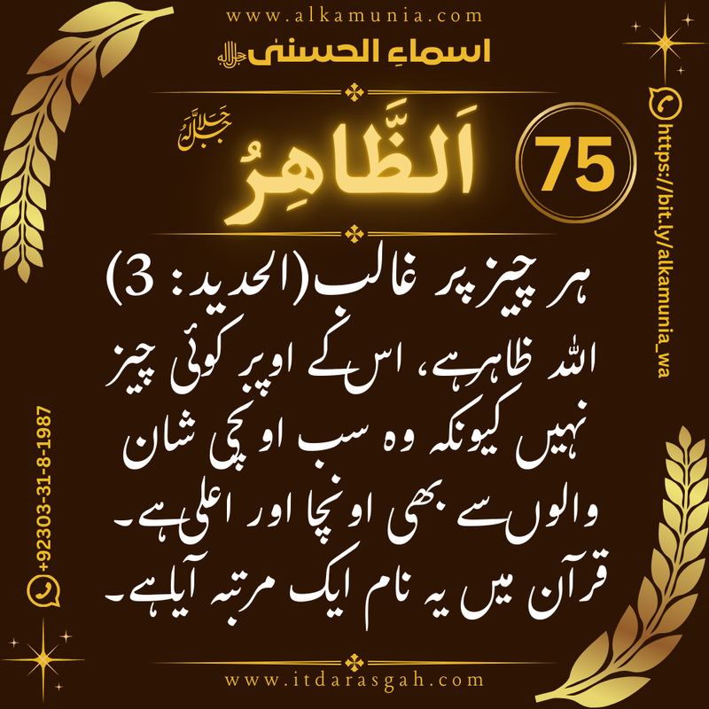 "ٱلظَّاهِرُ" کا ذکر انسان کے دل سے غفلت کا پردہ ہٹاتا ہے، اور وہ ہر چیز میں رب کی جھلک دیکھنے لگتا ہے۔