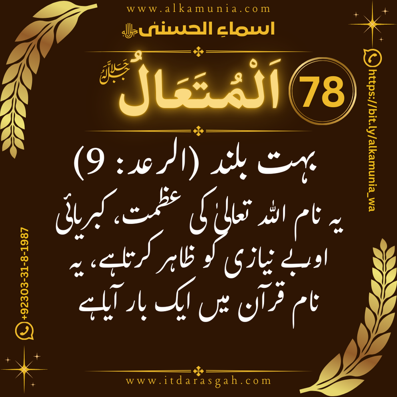 🌿 ٱلْمُتَعَالُ – معنیٰ، مفہوم، فضائل، برکات، اذکار و وظائف 🌿