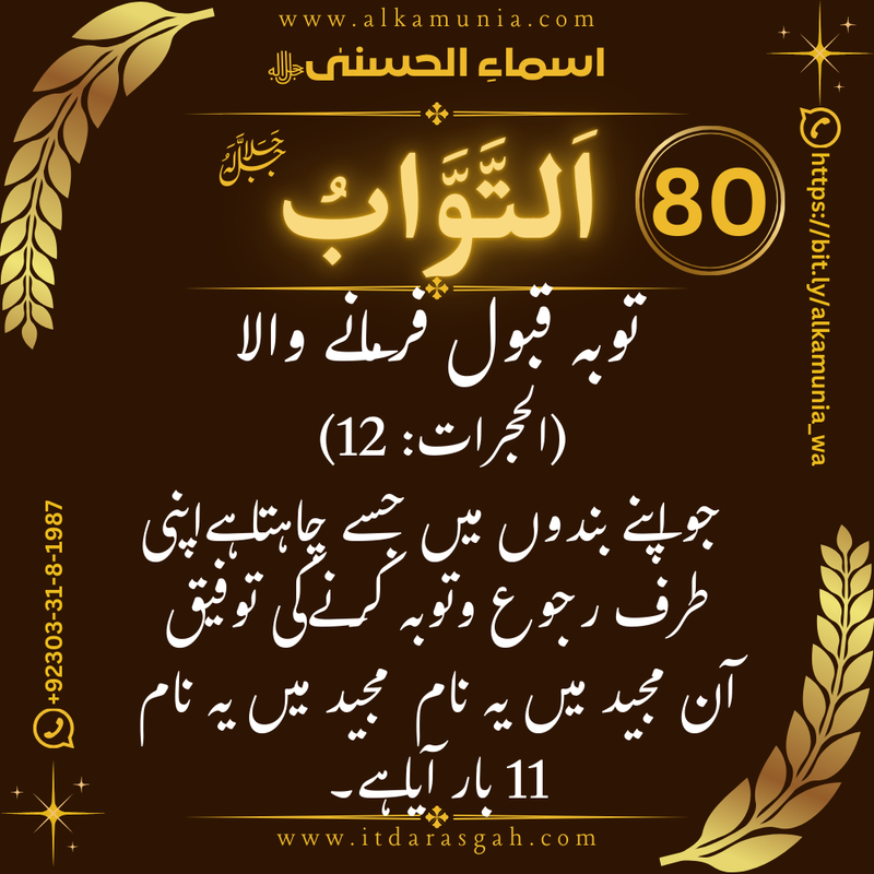 قرآن مجید میں:"وَھُوَ ٱلتَّوَّابُ ٱلرَّحِيمُ"(سورۃ البقرہ: 160)ترجمہ: "اور وہی بڑا توبہ قبول کرنے والا، بہت رحم کرنے والا ہے۔"