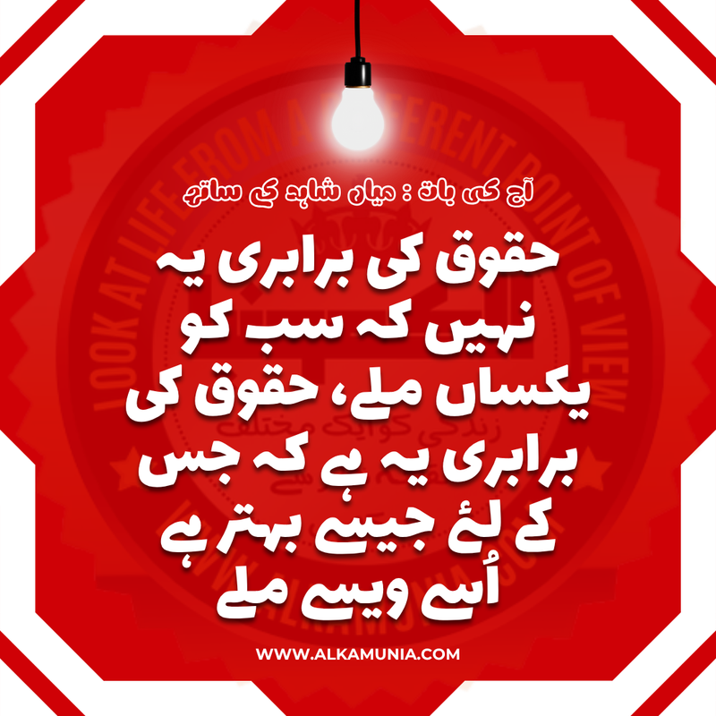 جملہ: حقوق کی برابری یہ نہیں کہ سب کو یکساں ملے، حقوق کی برابری یہ ہے کہ جس کے لیے جیسے بہتر ہے اسے ویسے ملے ⚖️