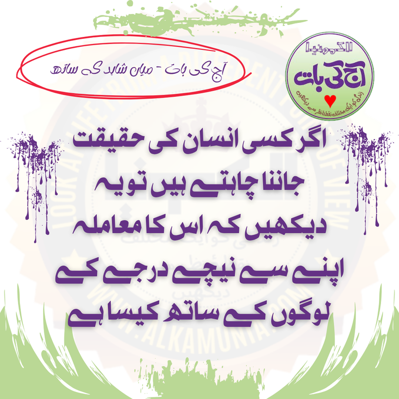 جملہ: اگر کسی انسان کی حقیقت جاننا چاہتے ہیں تو یہ دیکھیں کہ اُس کا معاملہ اپنے سے نیچے درجے کے لوگوں کے ساتھ کیسا ہے 🙏