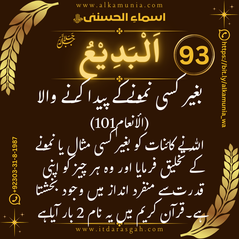 💖✧༺♥༻∞˚سلسلہ اسماء الحسنٰی˚∞༺♥༻✧💖★➌➒★💖 اَلْبَدِیْعُ ﷻ💖معنیٰ ومفہوم، فضائل و برکات اور اذکار و وظائف 💖