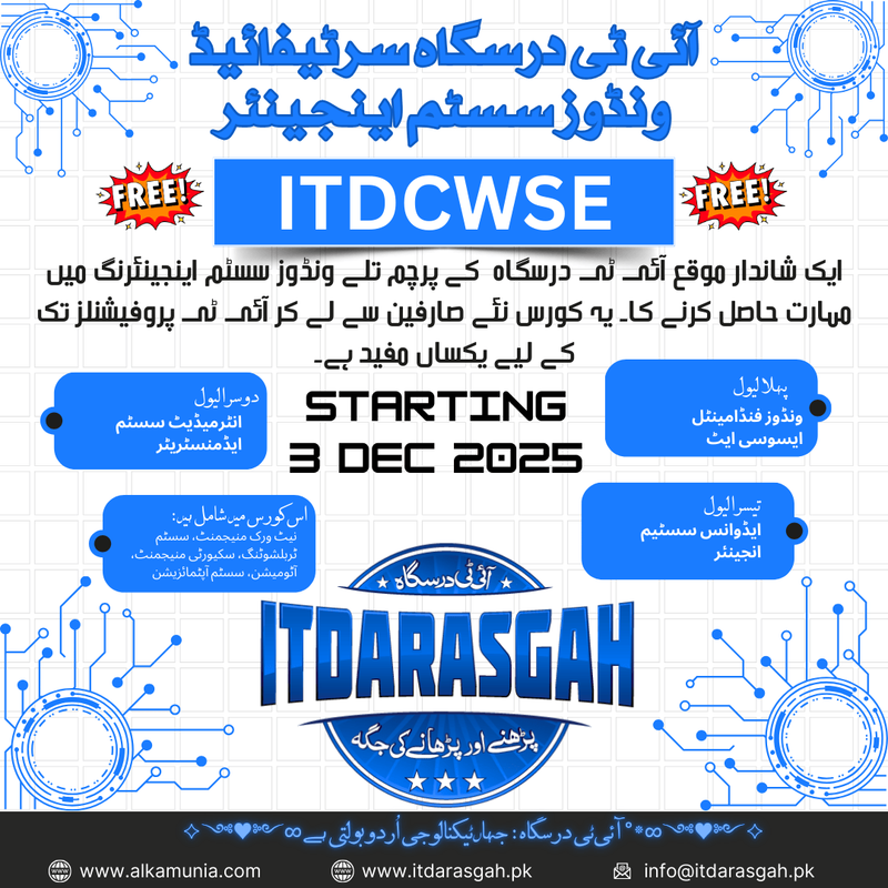 رجسٹریشن کے لیے ITDarsgahi فورم پر خصوصی سیکشن وزٹ کریں۔ محدود سیٹیں available ہیں!