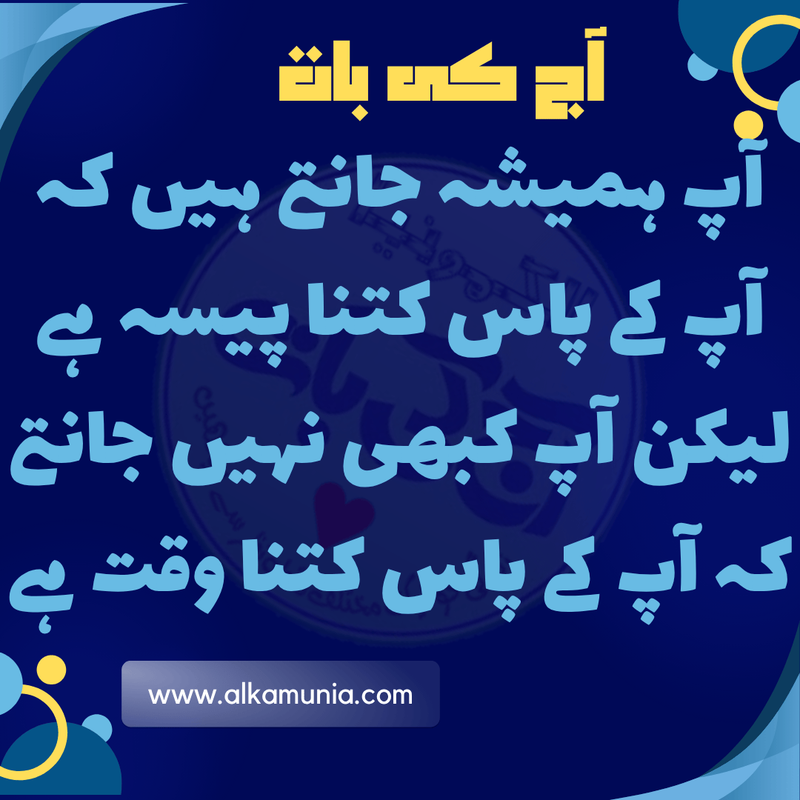 آج کا یہ جملہ ہمیں یاد دلاتا ہے کہ ہم اپنی زندگی کے بینک بیلنس کو تو روز چیک کرتے ہیں، لیکن اپنے وقت کے "بیلنس" کو کبھی نہیں دیکھتے۔