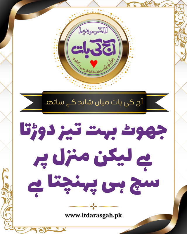 💬 "جھوٹ بہت تیز دوڑتا ہے، لیکن منزل پر سچ ہی پہنچتا ہے۔"