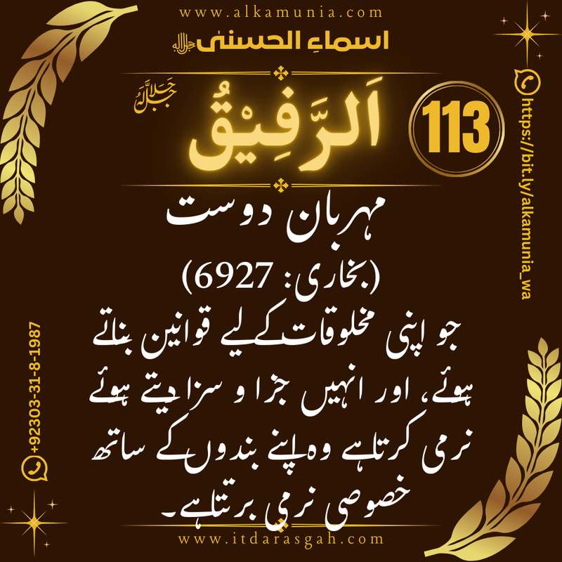 💖✧༺♥༻∞˚سلسلہ اسماء الحسنٰی˚∞༺♥༻✧💖★➌➊➊★💖 اَلرَّفِيْقُ ﷻ💖معنیٰ ومفہوم، فضائل و برکات اور اذکار و وظائف 💖