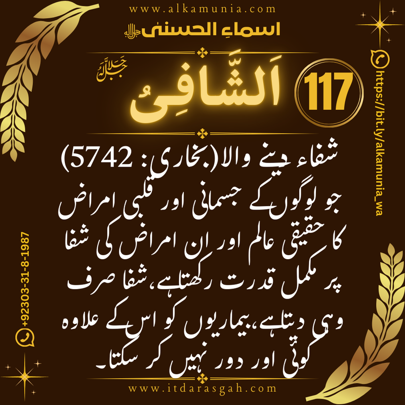 (اللہ تعالیٰ کا نام: شفا دینے والا، درد و مرض کو دور کرنے والا)
