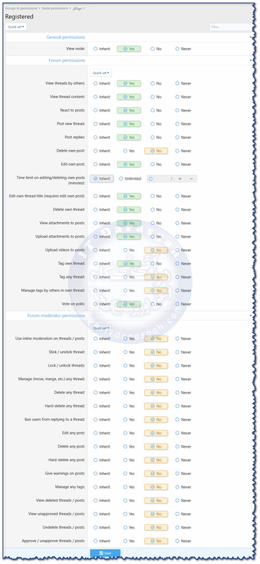 ایڈمن پینل → فورم → نوڈس → "Permissions" آئیکون🔸 سٹیپ 2: یوزر گروپ پرمیشنز سیٹ کرنا