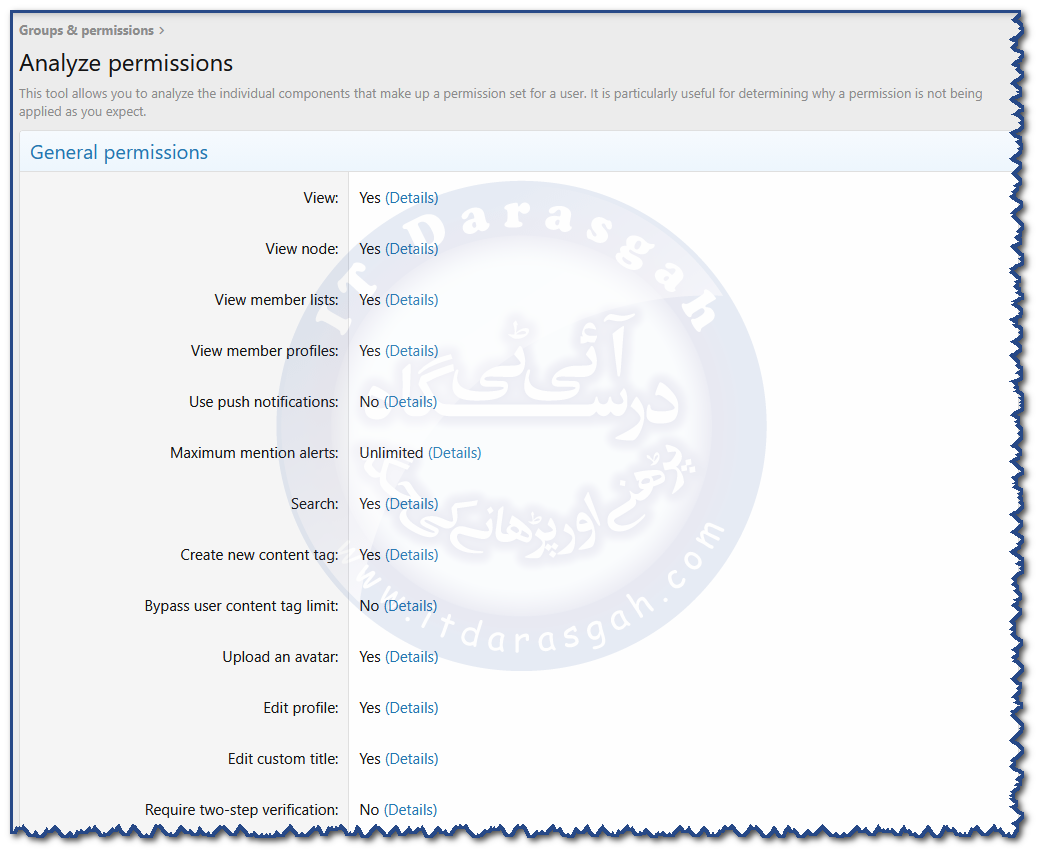ایڈمن پینل → ٹولز → پرمیشن اینالائزراینالائزر کے استعمال کے فوائد: