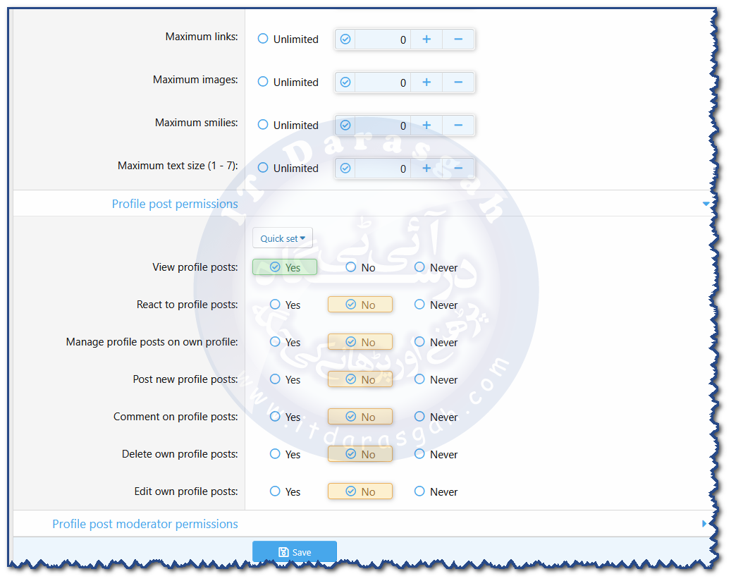 | موڈریٹر | نگران | محدود ایڈمن پرمیشنز |